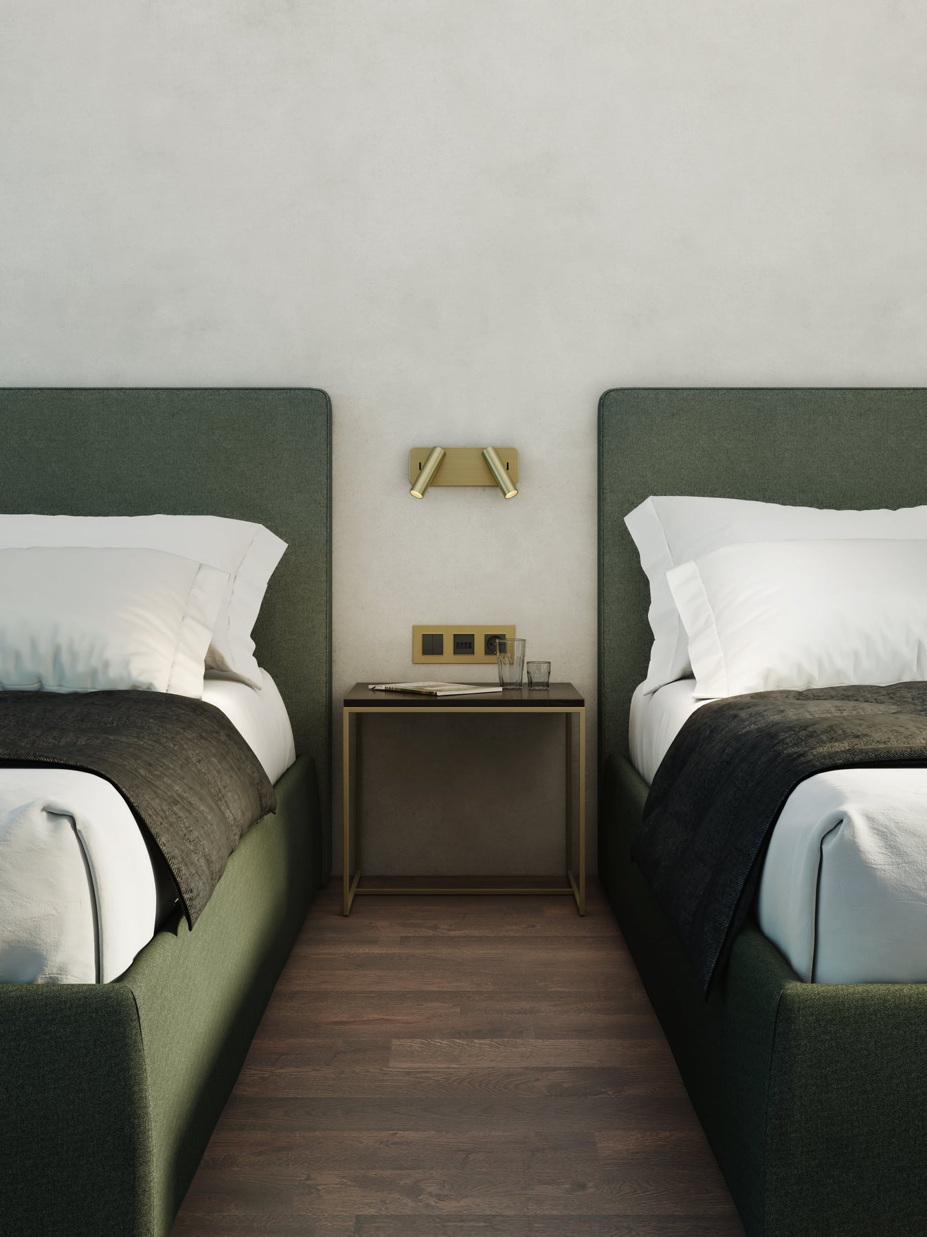 Incorporating a range of intelligent features such as low-glare integrated LEDS, adjustable heads and USB charging ports, the Enna collection of wall, desk and floor lights offers versatile solutions for hotel guest bedrooms. Its streamlined, slender design, characterized by cylindrical heads and slim stem bases, blends seamlessly into contemporary interiors. Enna is crafted with Astro’s signature robust construction and is intended to withstand prolonged everyday use. It comes in four timeless finishes to suit any décor: matt nickel, bronze, matt white or matt black.