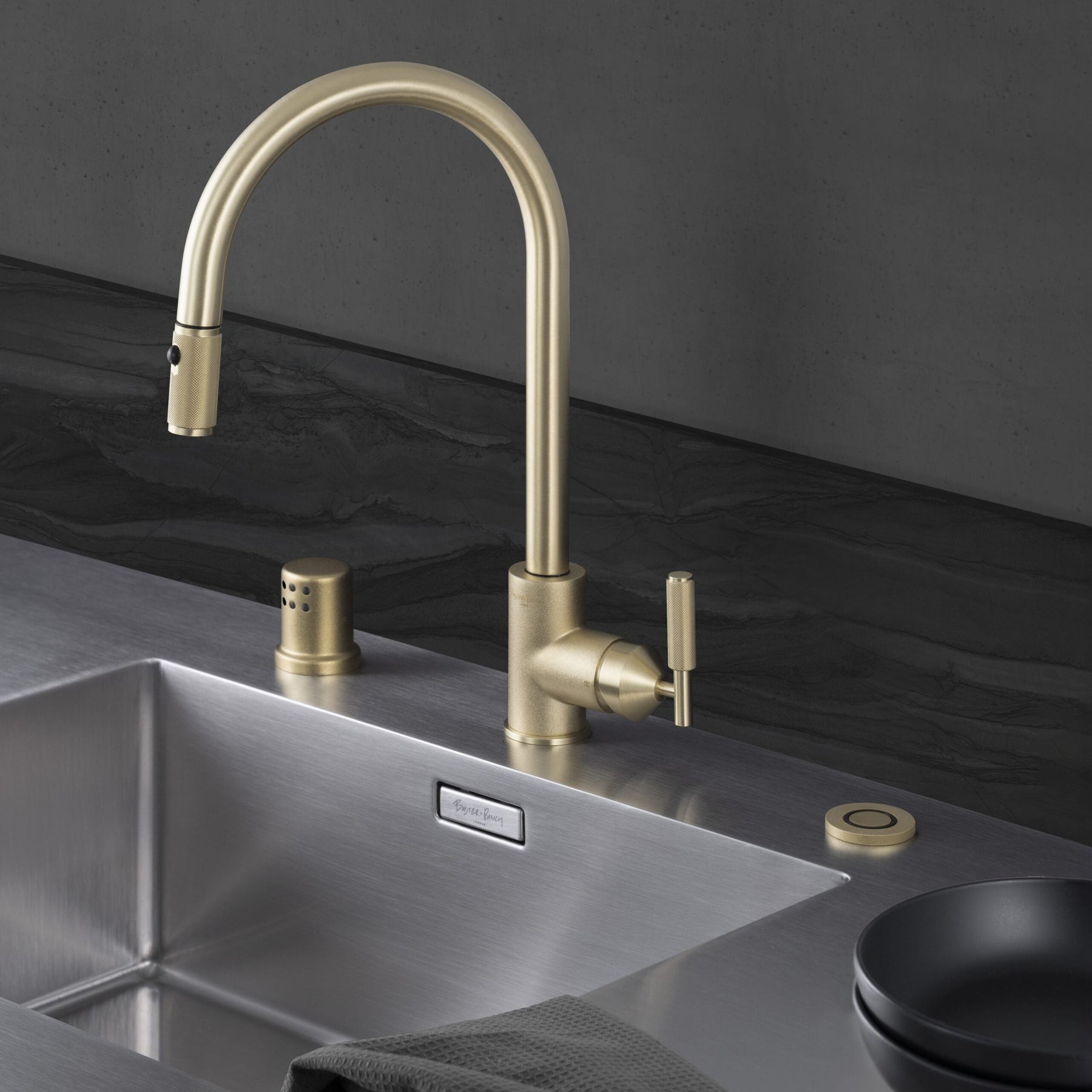 An Air Switch Kit with cast metal detailing to match your Buster + Punch Kitchen Faucet. Use it to activate your garbage disposal unit. Available in steel, brass, gun metal and welders black finishes, it combines seamlessly with our Faucet Mixer collection and Air Gap Kit to complete your B+P kitchen. The Buster + Punch Air Switch Kit includes everything you need to install and operate the switch. A dual outlet adaptor is also included for extra convenience.Â