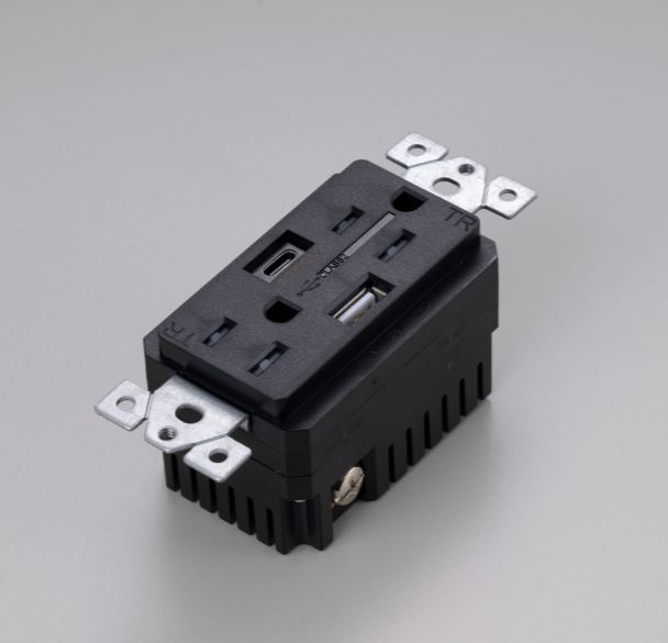 1 x duplex outlet 2 x USB charger Outlet: 15A / 125V / 5-15R / 60Hz USB charger: Class 2 / USB Type-A / 5VDC / 2.4A USB Type-C / PD’QC3.0