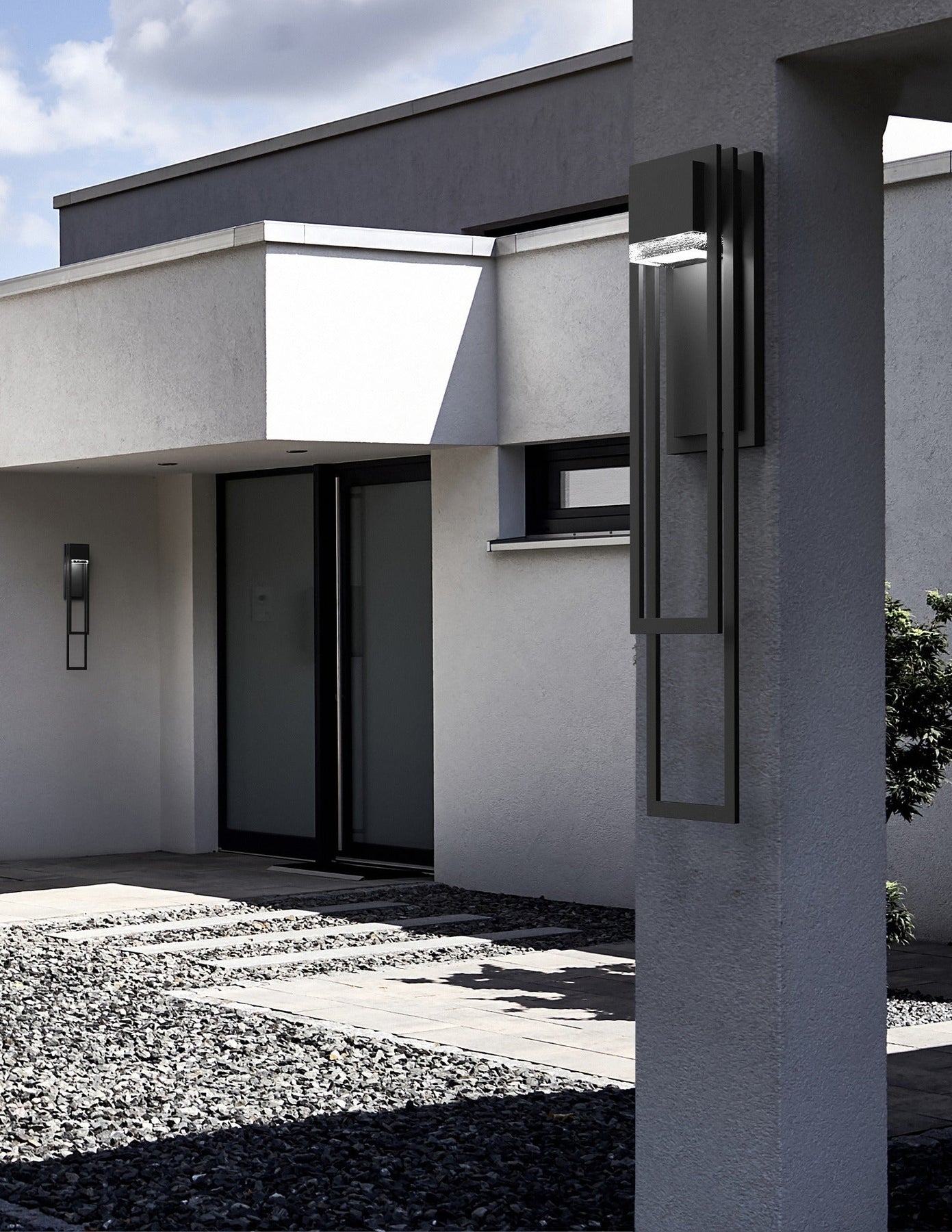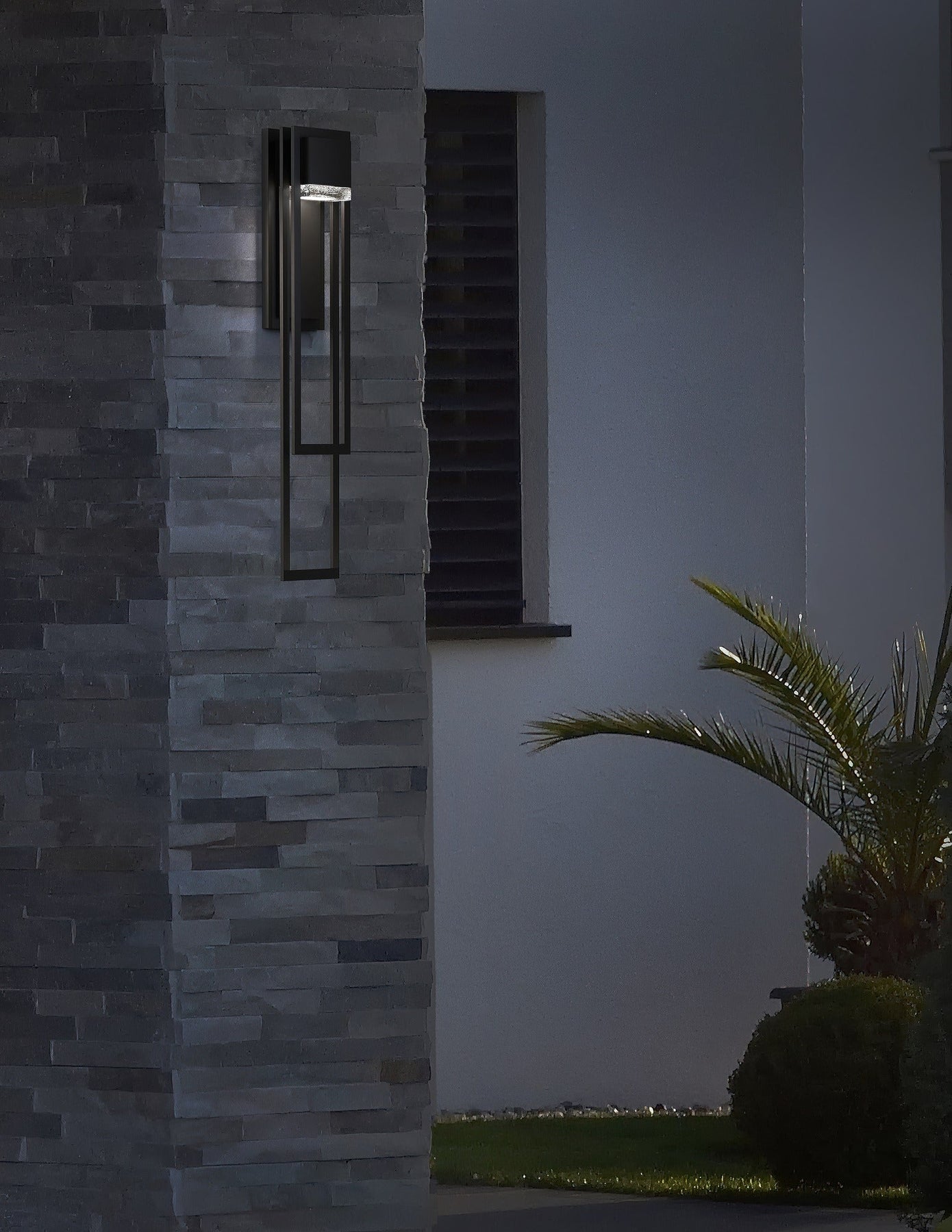 Ideal for today’s most popular architectures, the Cascade outdoor sconce combines crisp linear design with eye-catching details. An intriguing artisan glass diffuser casts 3,000K LED light downward through cascading rectangles of precision-cut metalwork. Aluminum construction, marine grade pre-treatment and AAMA 2604 powder coat finishes ensure long lasting beauty in all climates.
