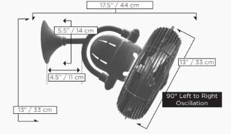 Vintage Charm and Modern Efficiency. Inspired by classic train cabin ventilators, its smooth 90° oscillation—left to right, forward and reverse—cools your space with poise and precision. With a low profile yet undeniable strength, the Kaye can be mounted on the wall or ceiling, perfect for small or awkward spaces. Crafted from durable cast aluminum and stamped steel, it enhances the efficiency of your HVAC system while offering timeless elegance. Backed