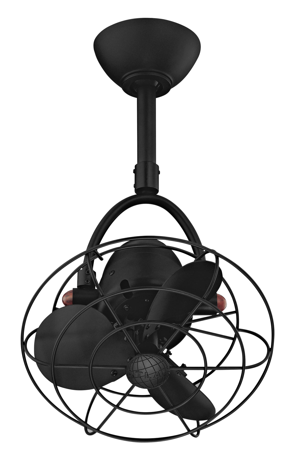 - The fan is available with the following blade options: - hand-balanced metal blades with decorative metal blade guards - hand-balanced metal blades with metal safety cages for low-ceiling applications - hand-balanced solid wood blades without blade guards