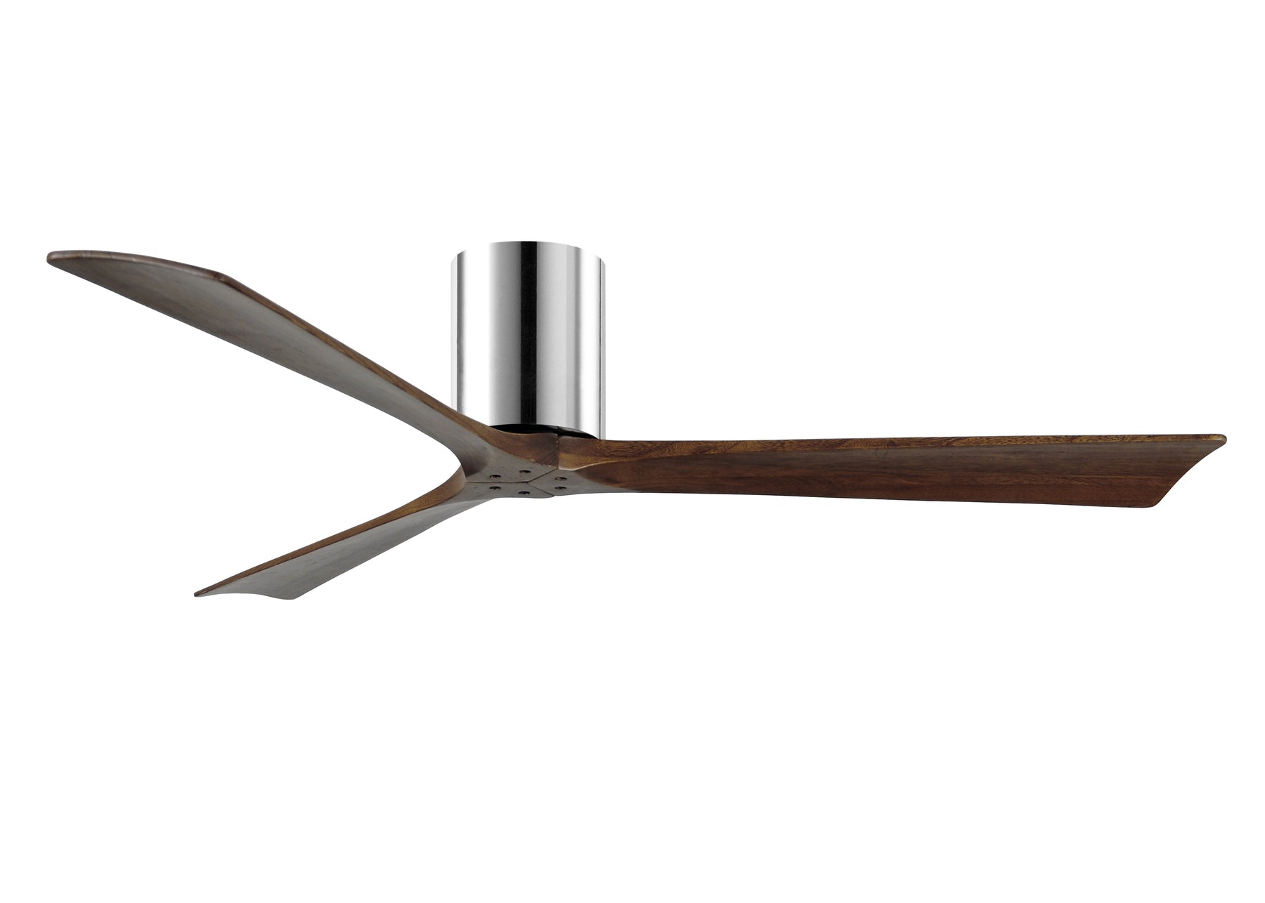 Cutting a figure like no other, the Irene-3HLK ceiling mount fan, is rustic, yet strikingly modern with three neatly joined solid walnut-stained wooden blades. A cylindrical motor housing complements its minimal profile. Irene-3HLK ceiling mount design is streamline while still appearing warm and natural. Three Blade Paddle Fan with Beautiful CNC-Cut Solid Wood Blades. DC Motor. Wall and Remote Control Included.