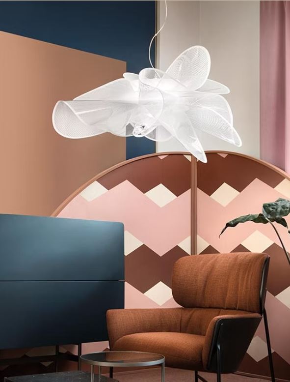 Elegant and sensual movement are part of La Belle Étoile’s visual grammar; the suspension is inspired by the graceful twirling of a ballerina. The lightweight yet unbreakable lamp is completely handcrafted in Slamp’s atelier. The dialogue between technological innovation and stylistic originality speaks loudly. This modern lamp is comes in two suspension and is available in black or white depending on the type of space. Both versions are versatile, avantgarde lighting solutions offering minimal, glamorous aesthetics. Integrated LED with 2830 lumens in 2700K.