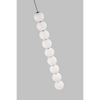 The Orbet 9-Light Line-Voltage Pendant by Sean Lavin for Tech Lighting is inspired by the classic pearl with perfectly stacked milk glass orbs. LED illumination through milk-glass provides a soft diffused aesthetic and each orb is accented by a thin contrasting metal band. This fixture is the perfect design for hanging individually or clustering in multiples for a dramatic effect. Finishes are Nightshade Black, Polished Nickel, and Natural Brass.Â