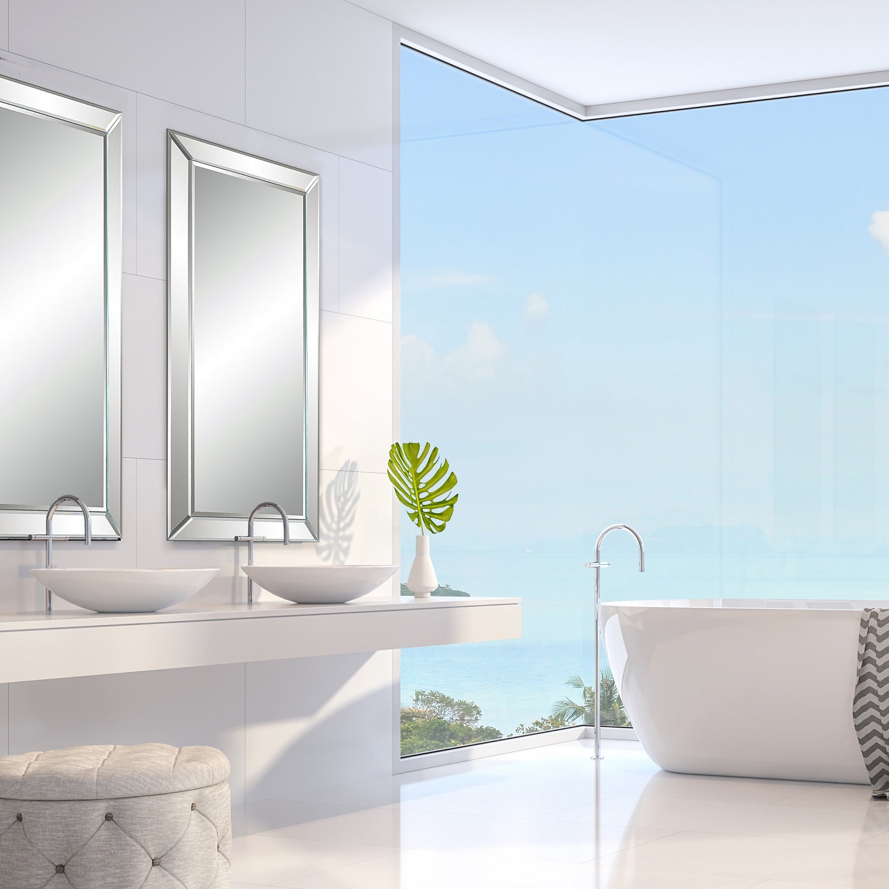 This elegant, frameless mirror features beveled mirror panels, which are slightly sloped away from the beveled center mirror. May be hung either vertically or horizontally. 24.0 In. W X 48.0 In. H X 1.3 In. D